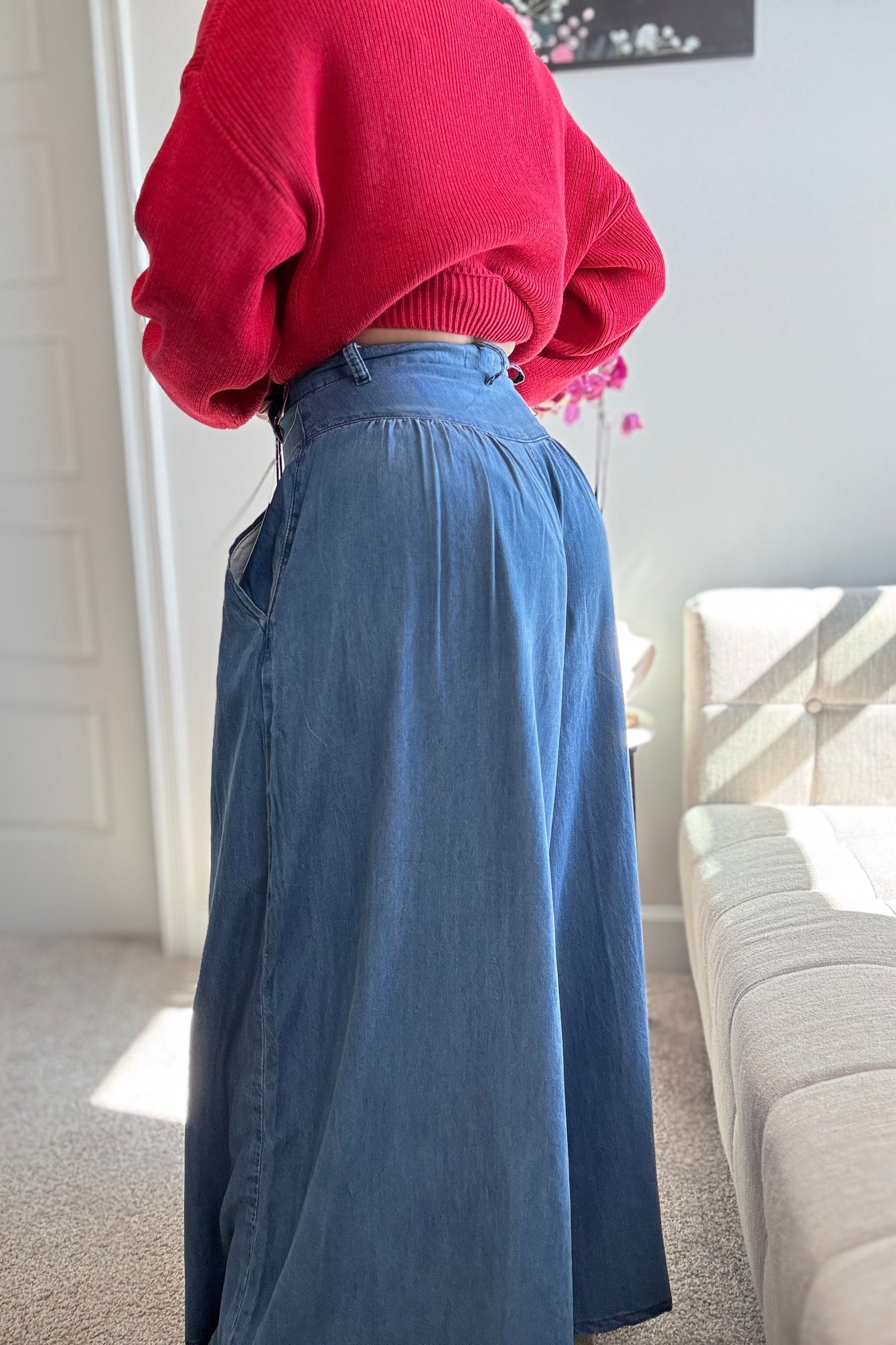 WIDE LEG CHAMBRAY PANTS