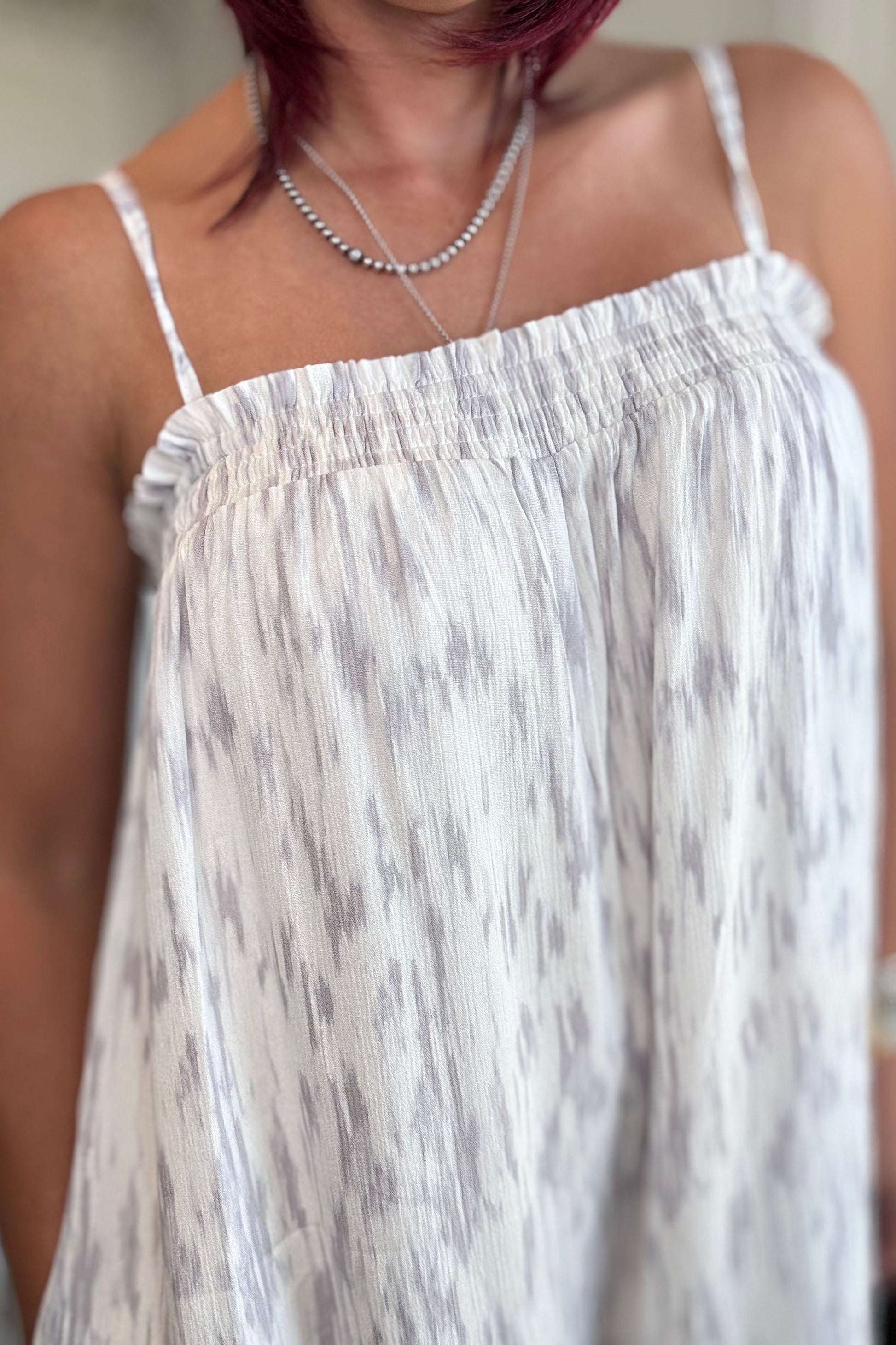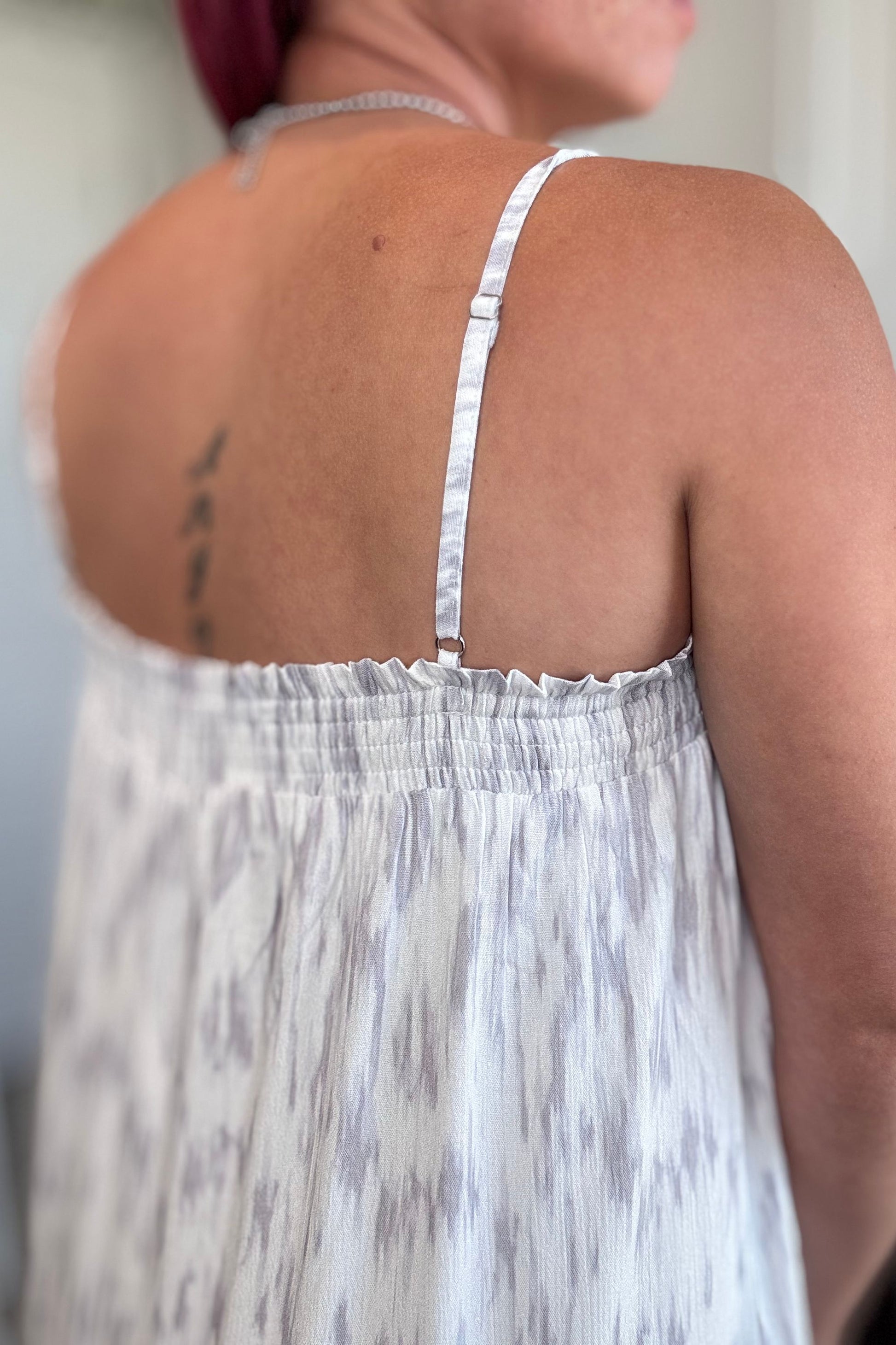 Su estampado abstracto aporta un detalle artístico y delicado, creando dimensión visual de manera sutil y sofisticada. La silueta wide leg ofrece una caída fluida y favorecedora, mientras el elástico alrededor del busto brinda un ajuste cómodo y adaptable. Los straps ajustables permiten personalizar el fit según tu preferencia.