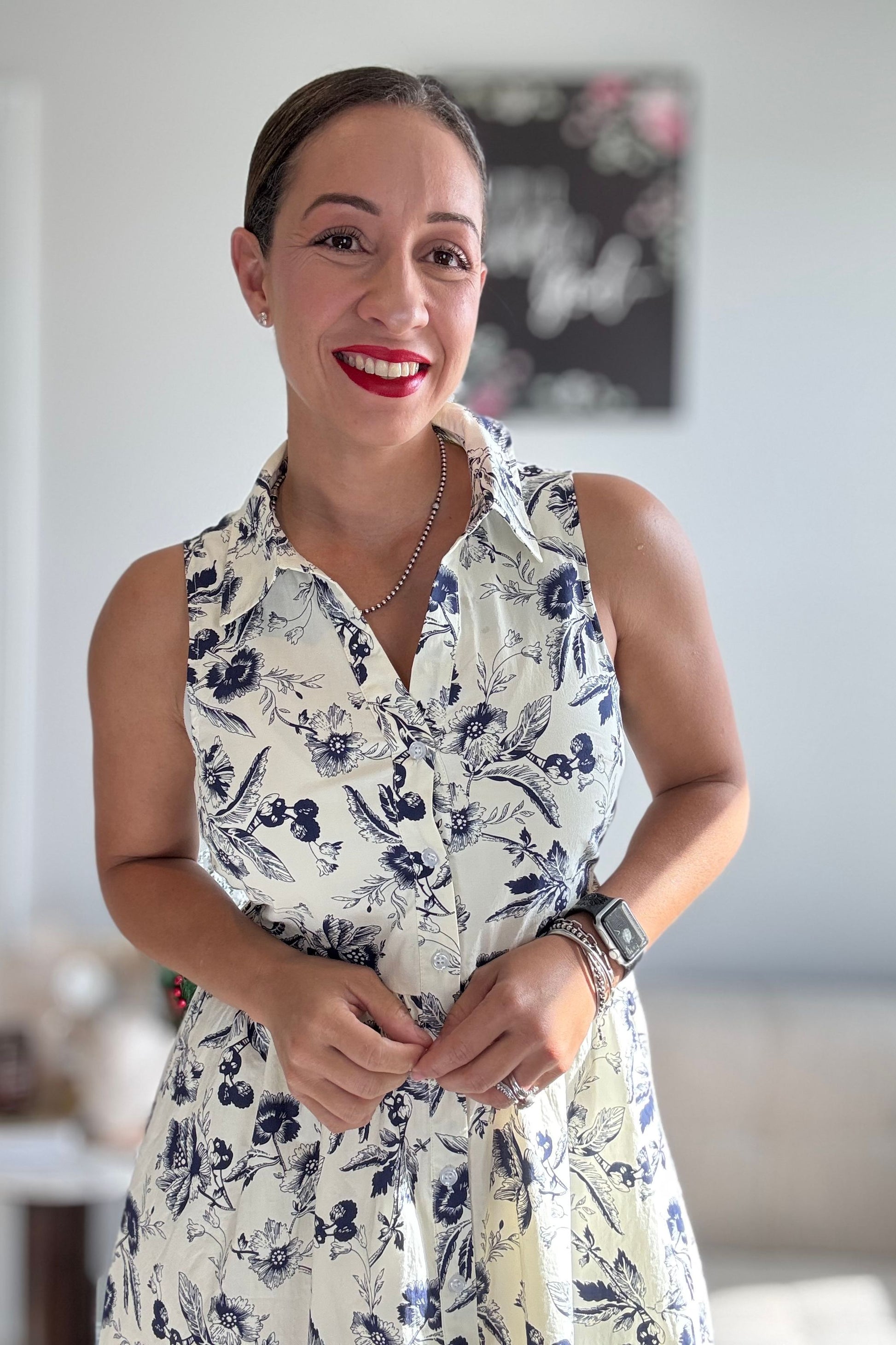 Effortlessly elegant design: sleeveless collared neckline and button-down front create a polished, timeless look.
