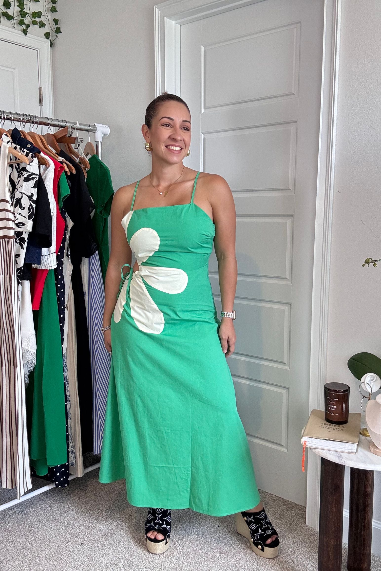 Su diseño sleeveless con tirantes ajustables se adapta delicadamente a tu cuerpo, mientras los detalles florales y sutiles aberturas laterales aportan ese toque especial que eleva la pieza sin perder elegancia. Su silueta midi fluye contigo, creando un balance perfecto entre comodidad, suavidad y presencia. Es ese vestido que eliges cuando quieres verte arreglada sin esfuerzo, pero sentirte completamente tú.
