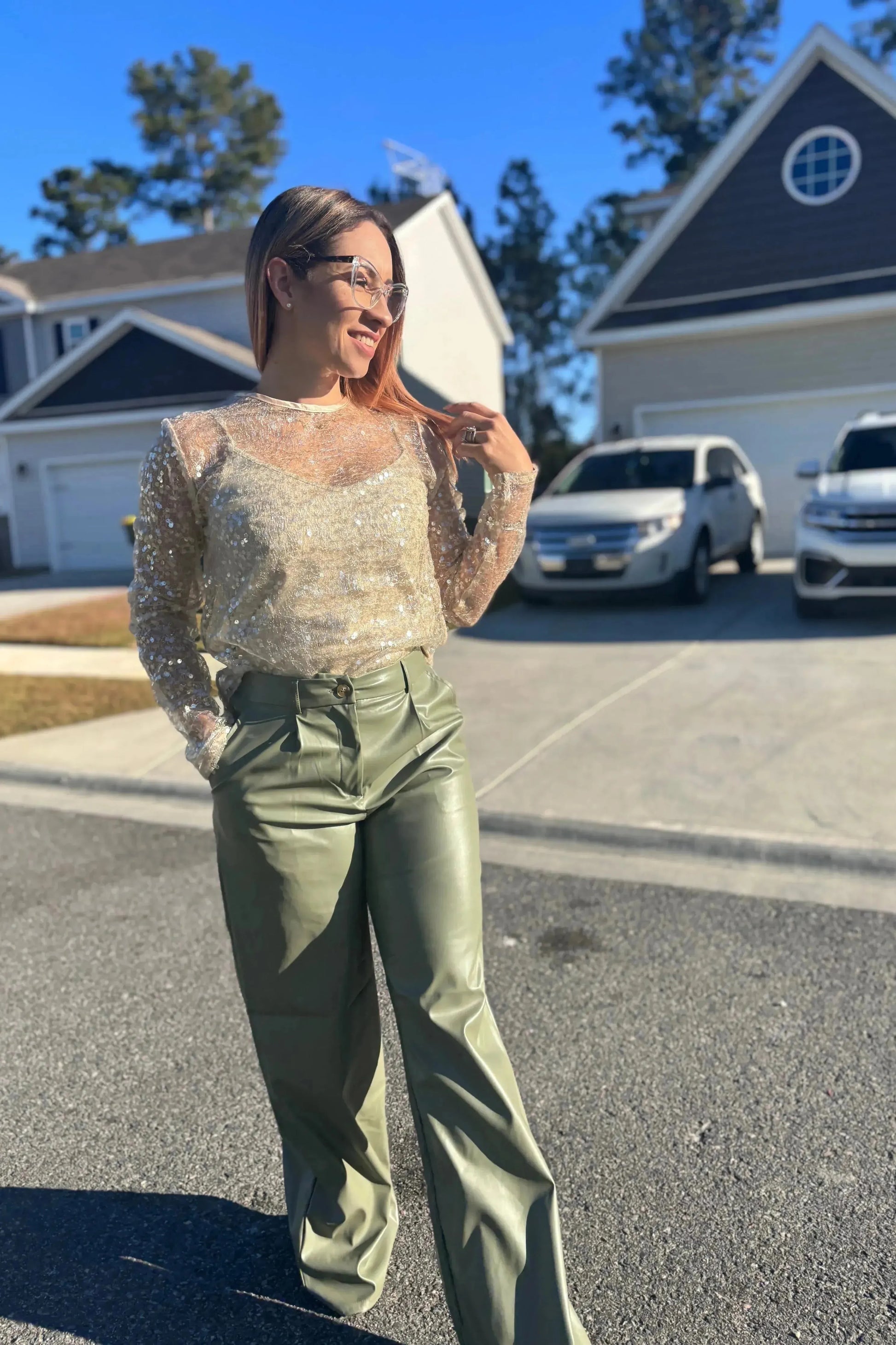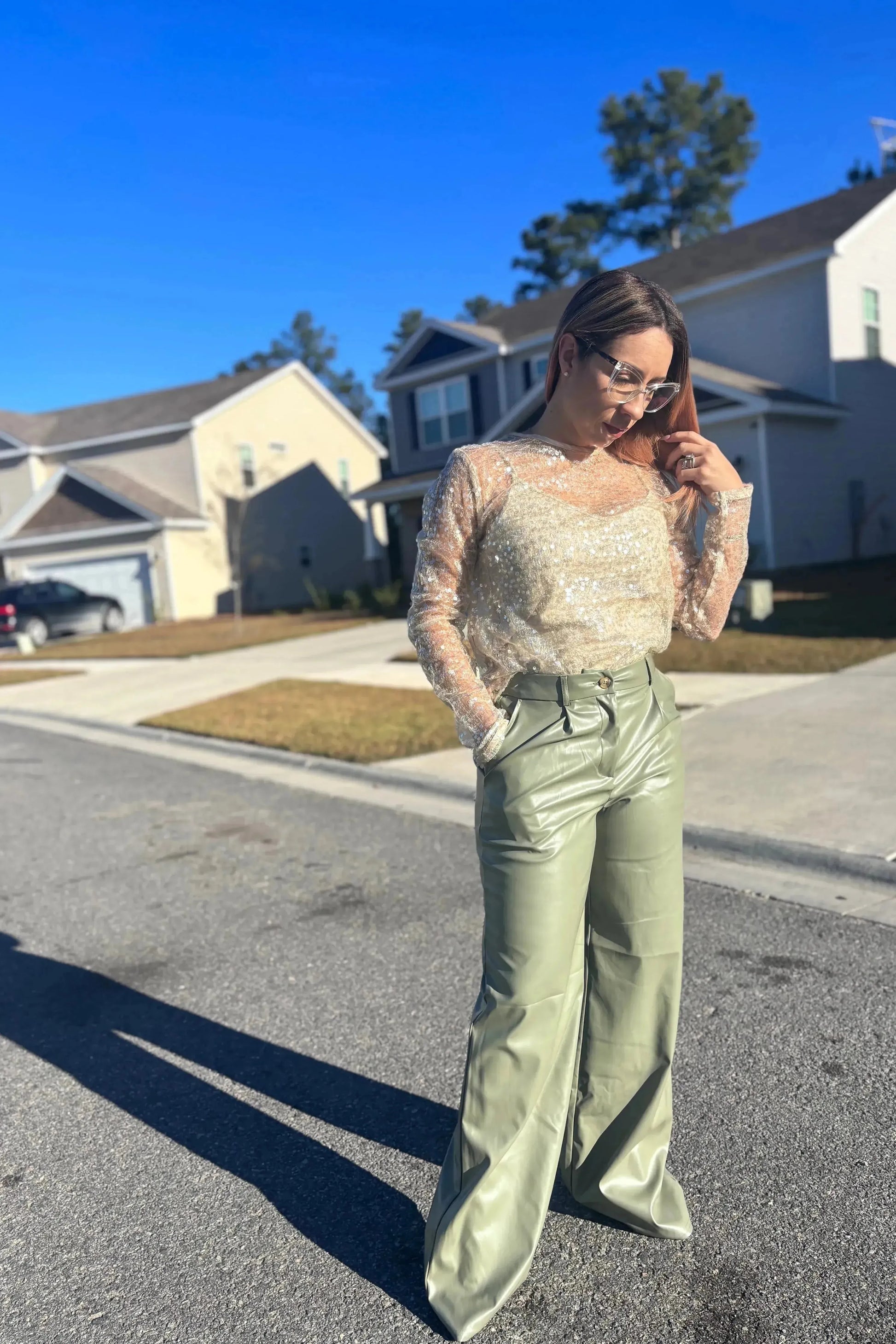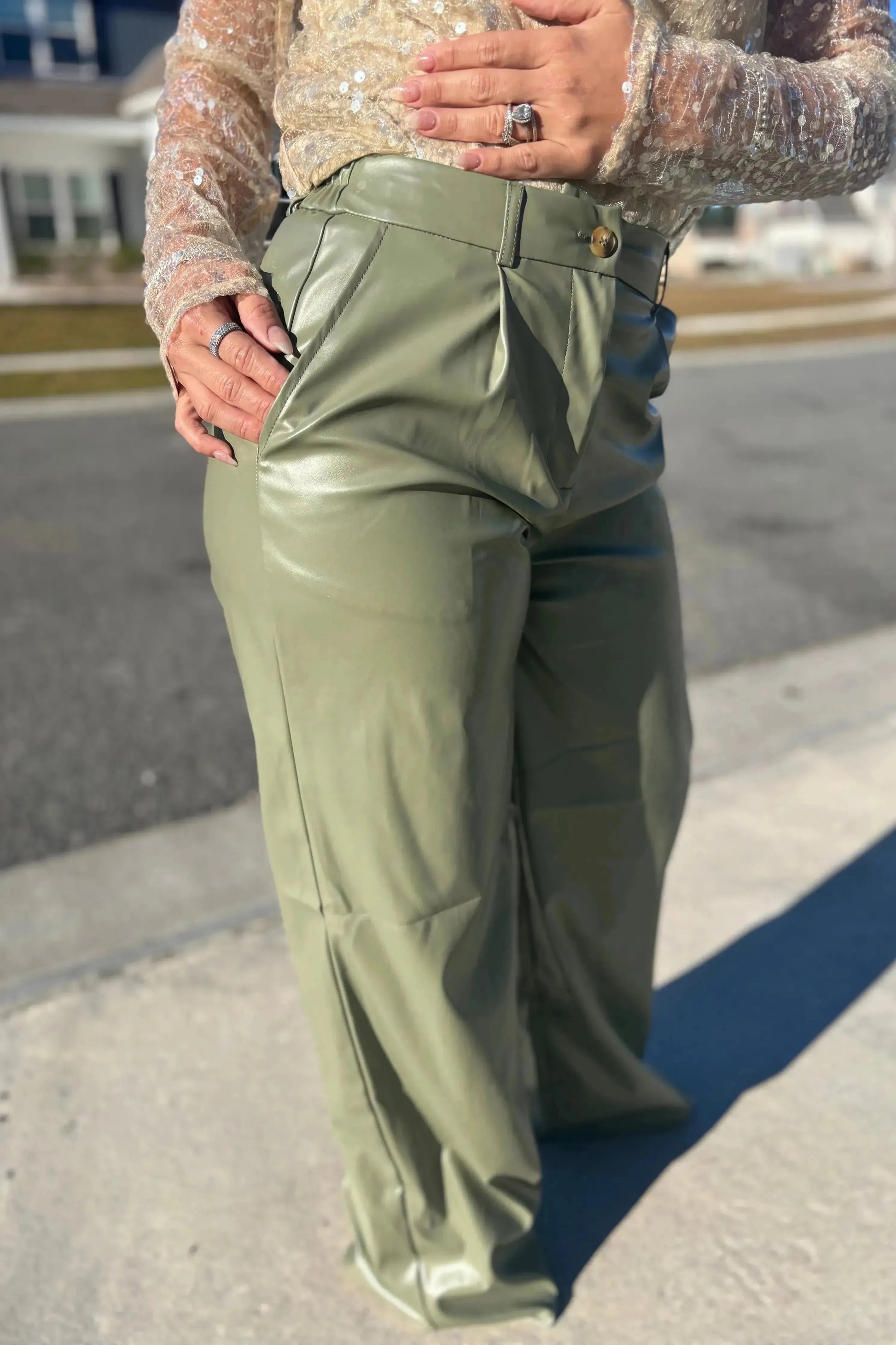 - PU LEATHER PLEATED STRAIGHT WIDE LEGS PANTS