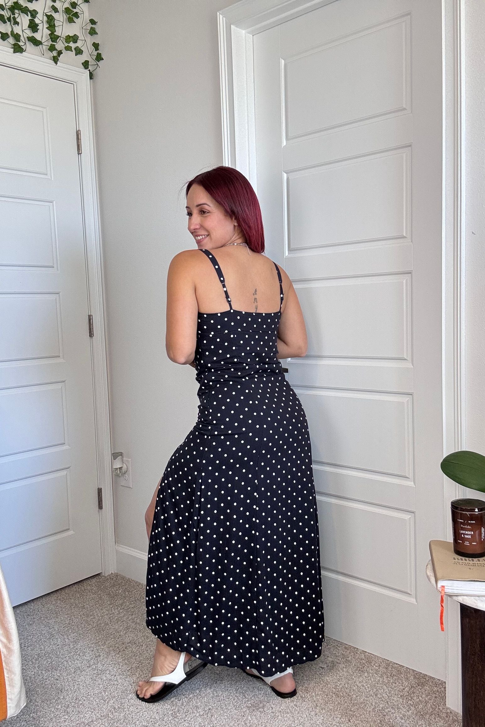 Navy Polkadot Midi Dress
