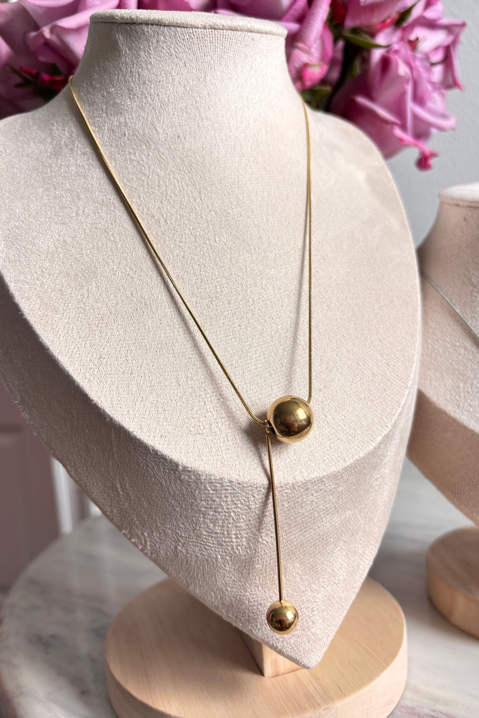SNAKE CHAIN BALL NECKLACE 18K GOLD STAINLESS STEEL