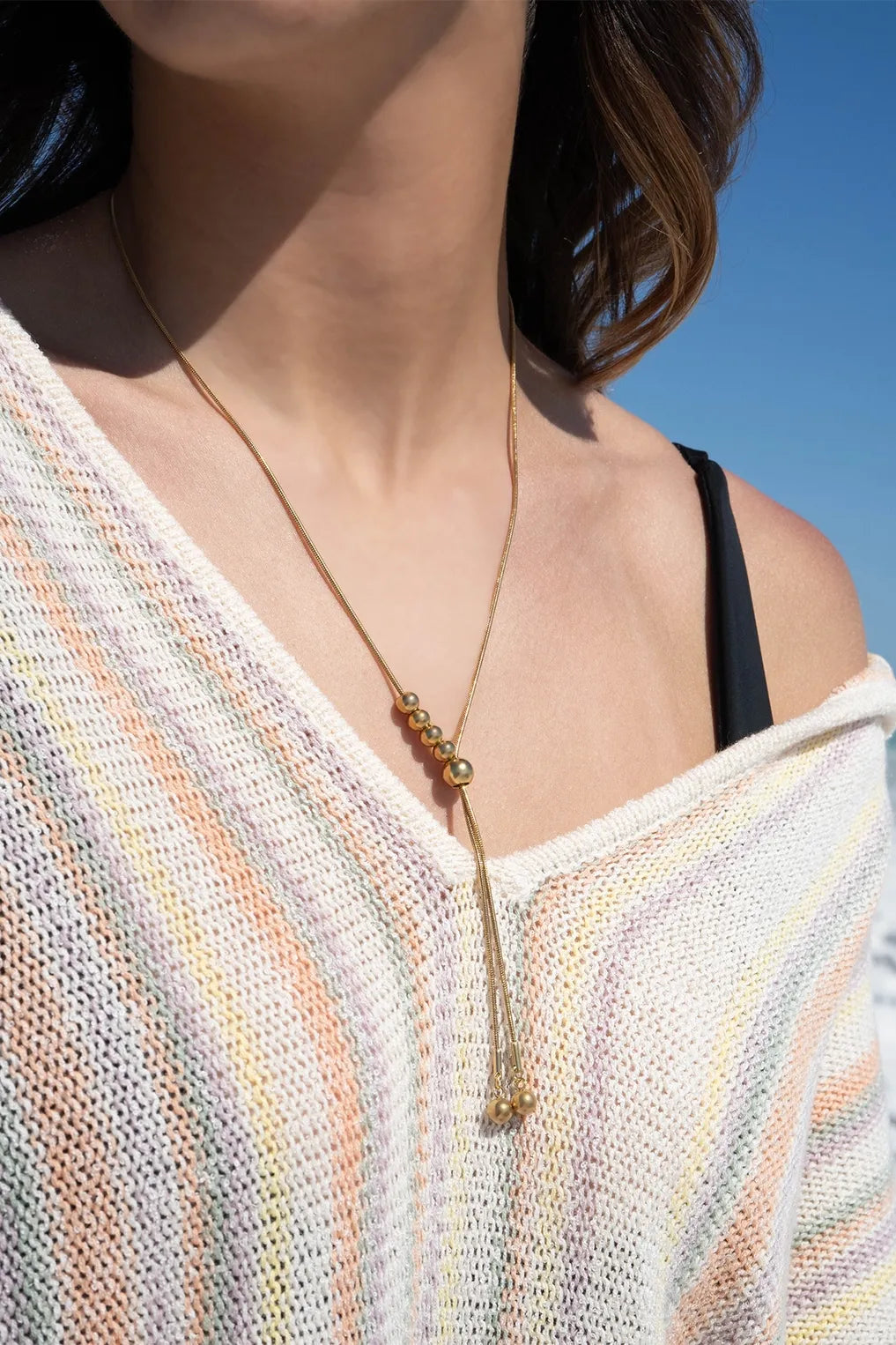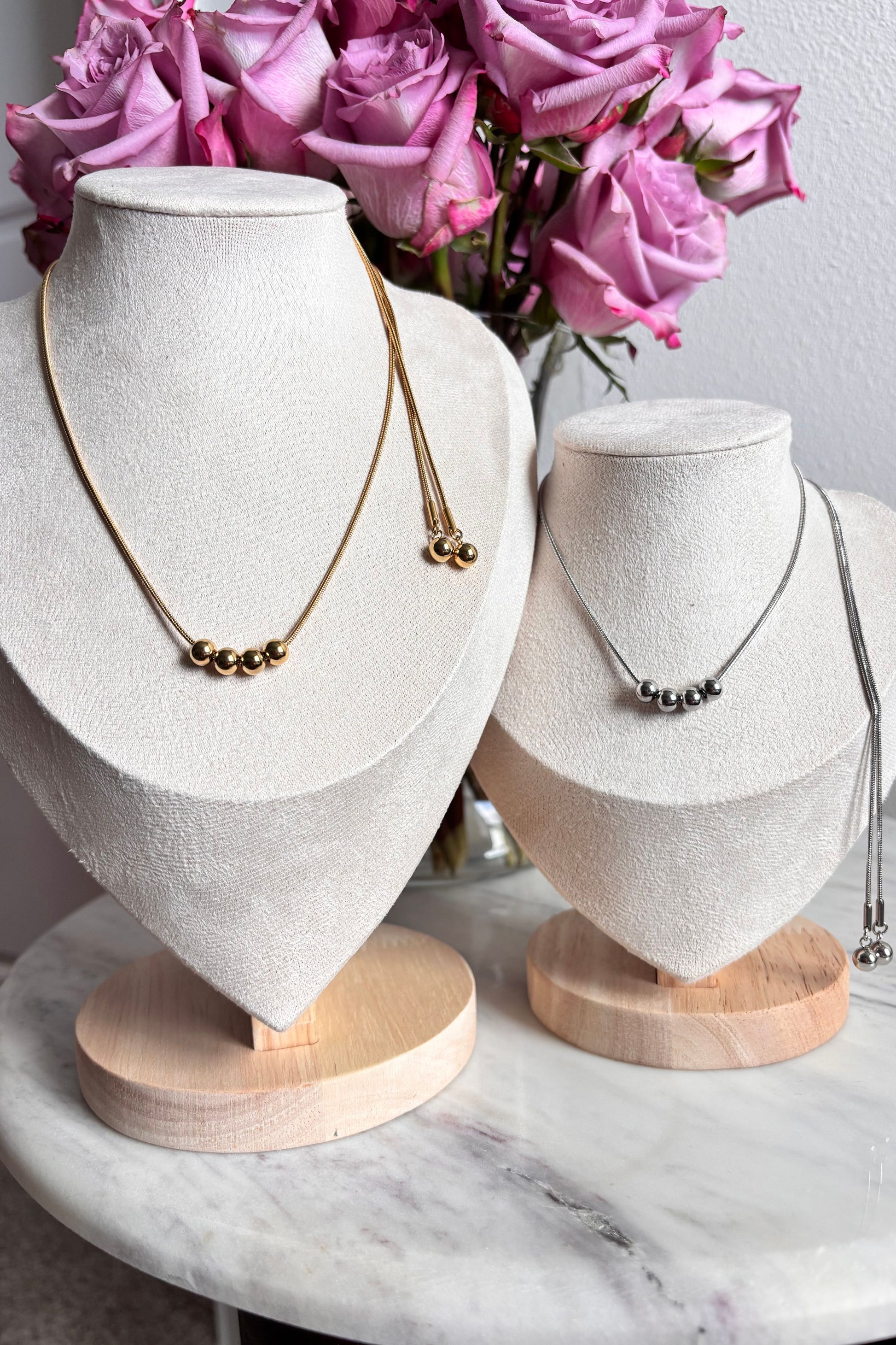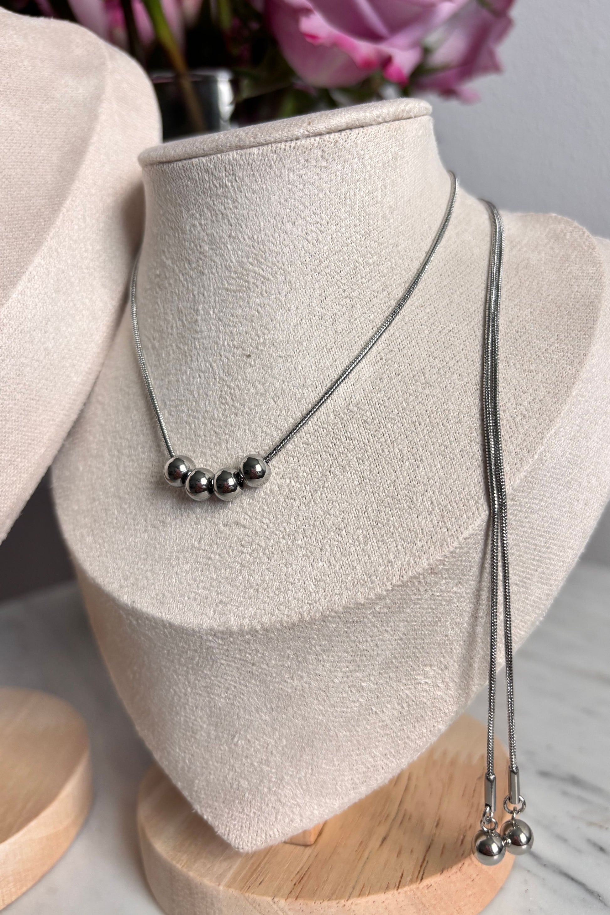A simple look that offers endless style opportunities! The Adjustable Ball Charm Necklace is a stunning necklace for any season. Featuring a classic snake chain adorned with four sparking ball charms and an adjustable bolo style clasp, this necklace is as beautiful as it is versatile!