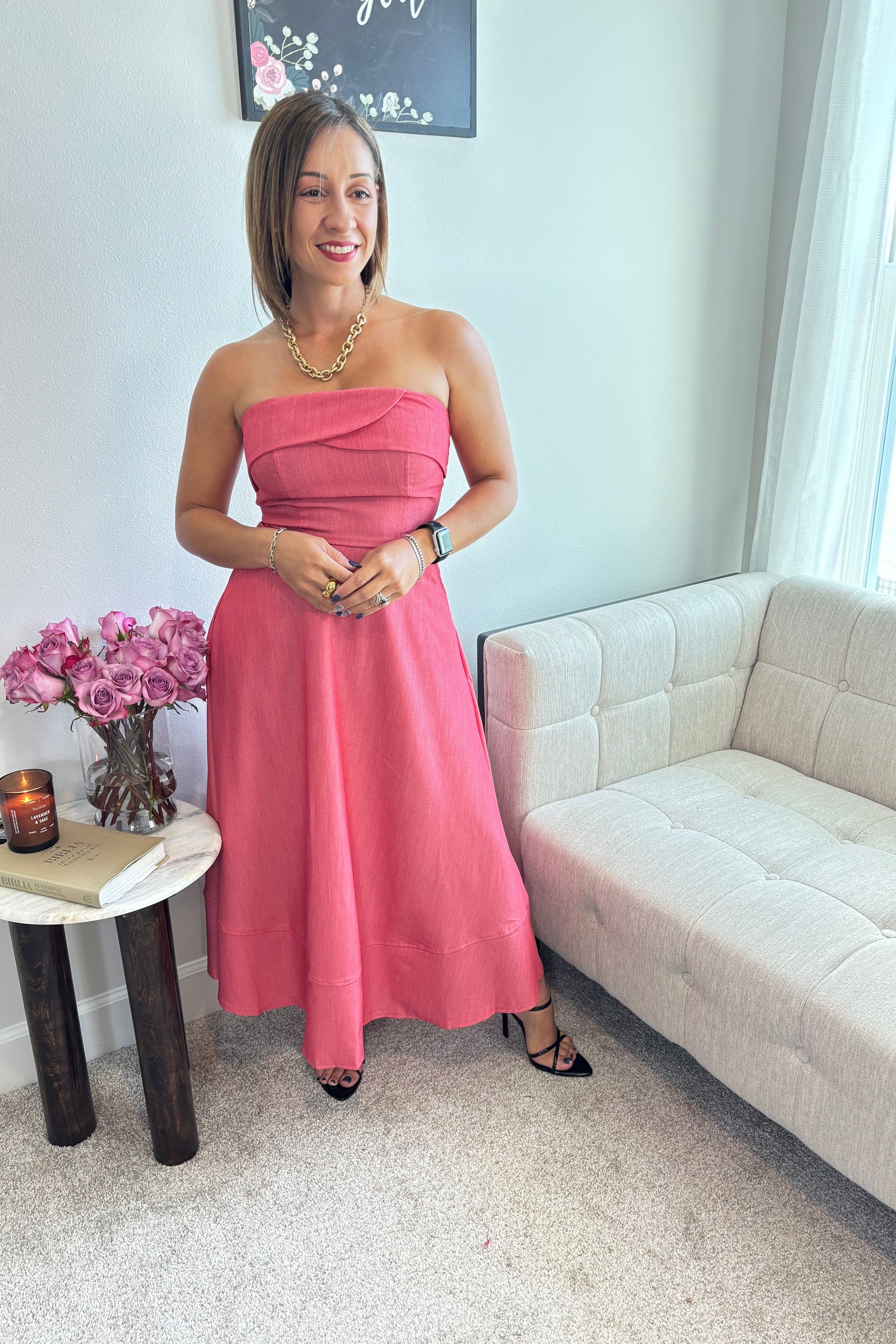 The STRAPLESS MIDI DRESS WITH OPEN BACK was made to make you feel unforgettable. Its elegant, feminine design and captivating red tone bring together confidence, grace, and timeless beauty in one perfect piece.