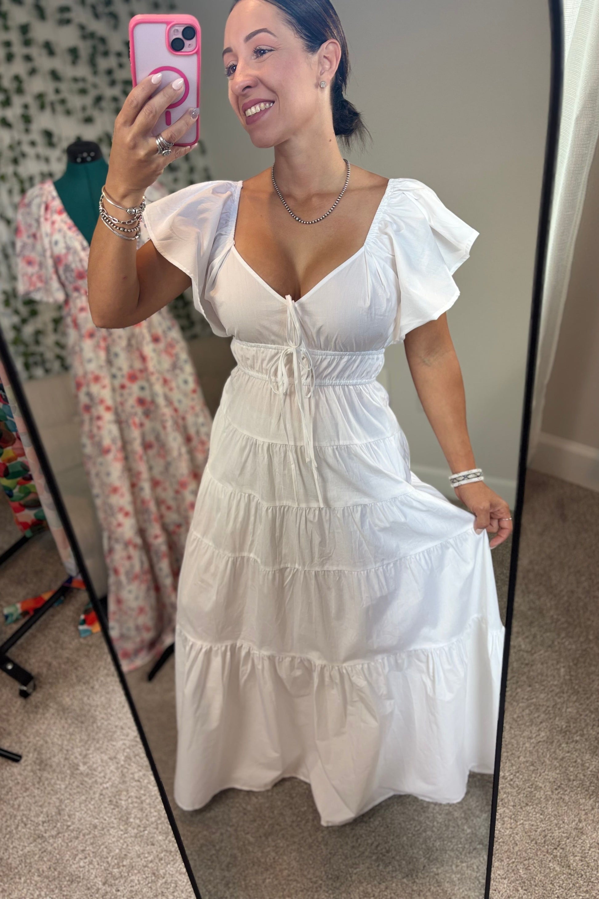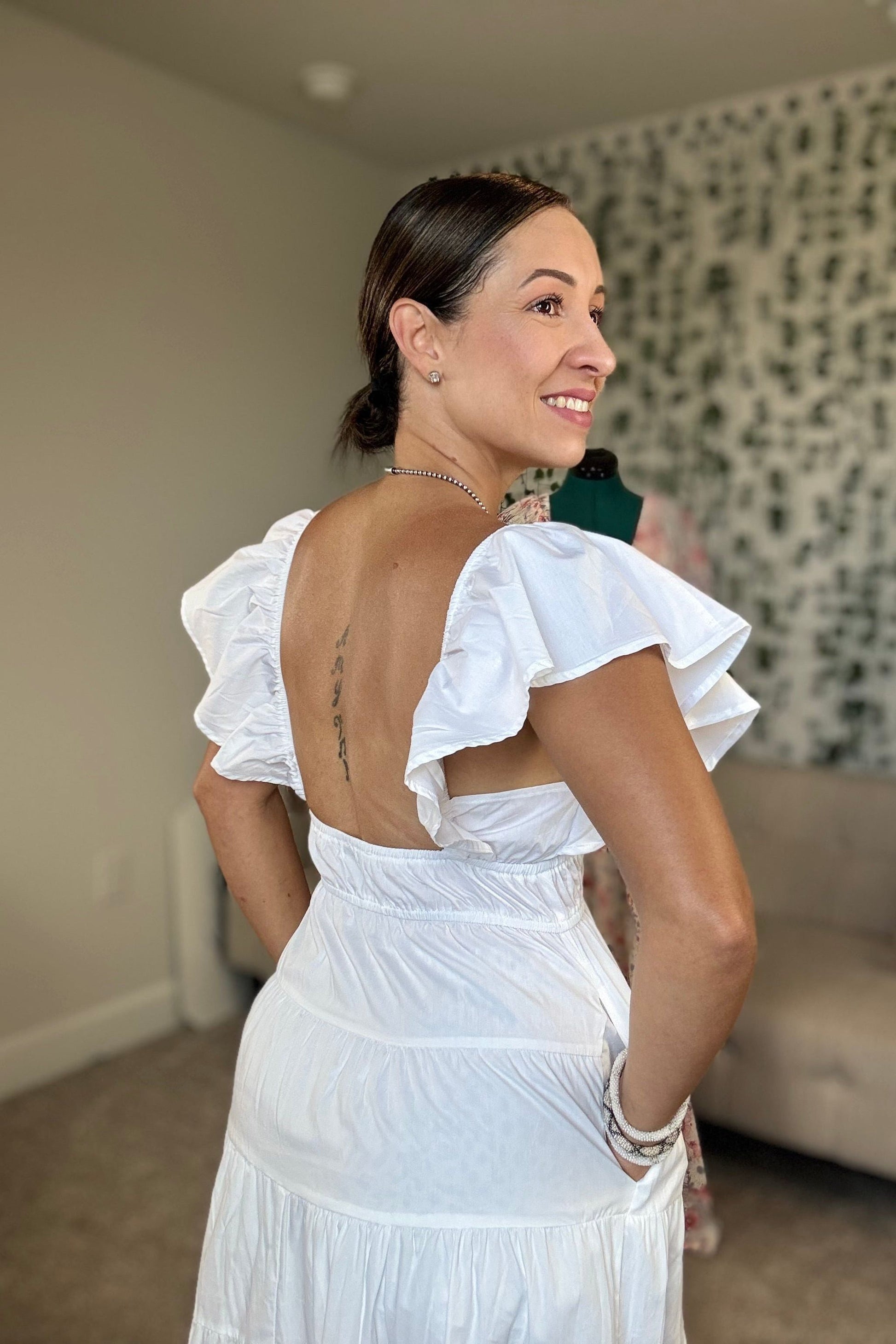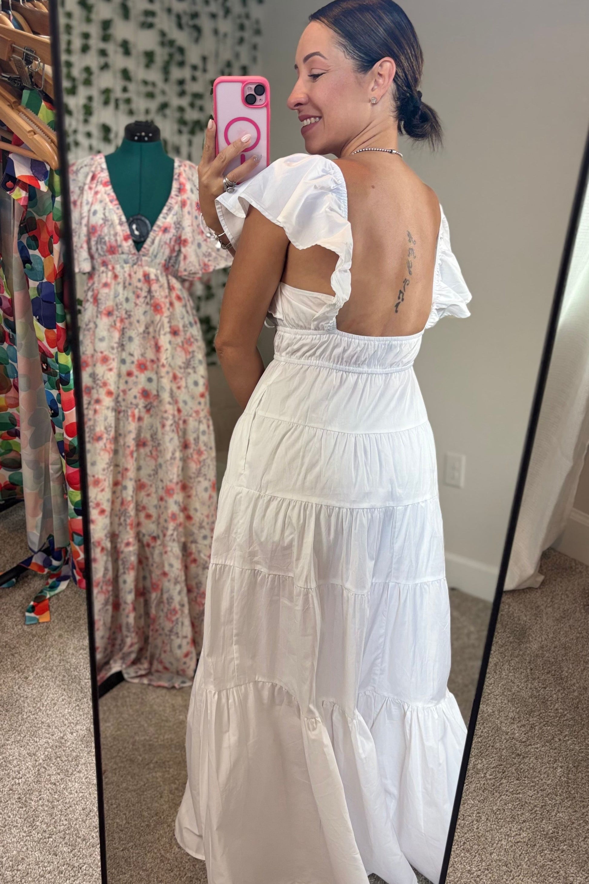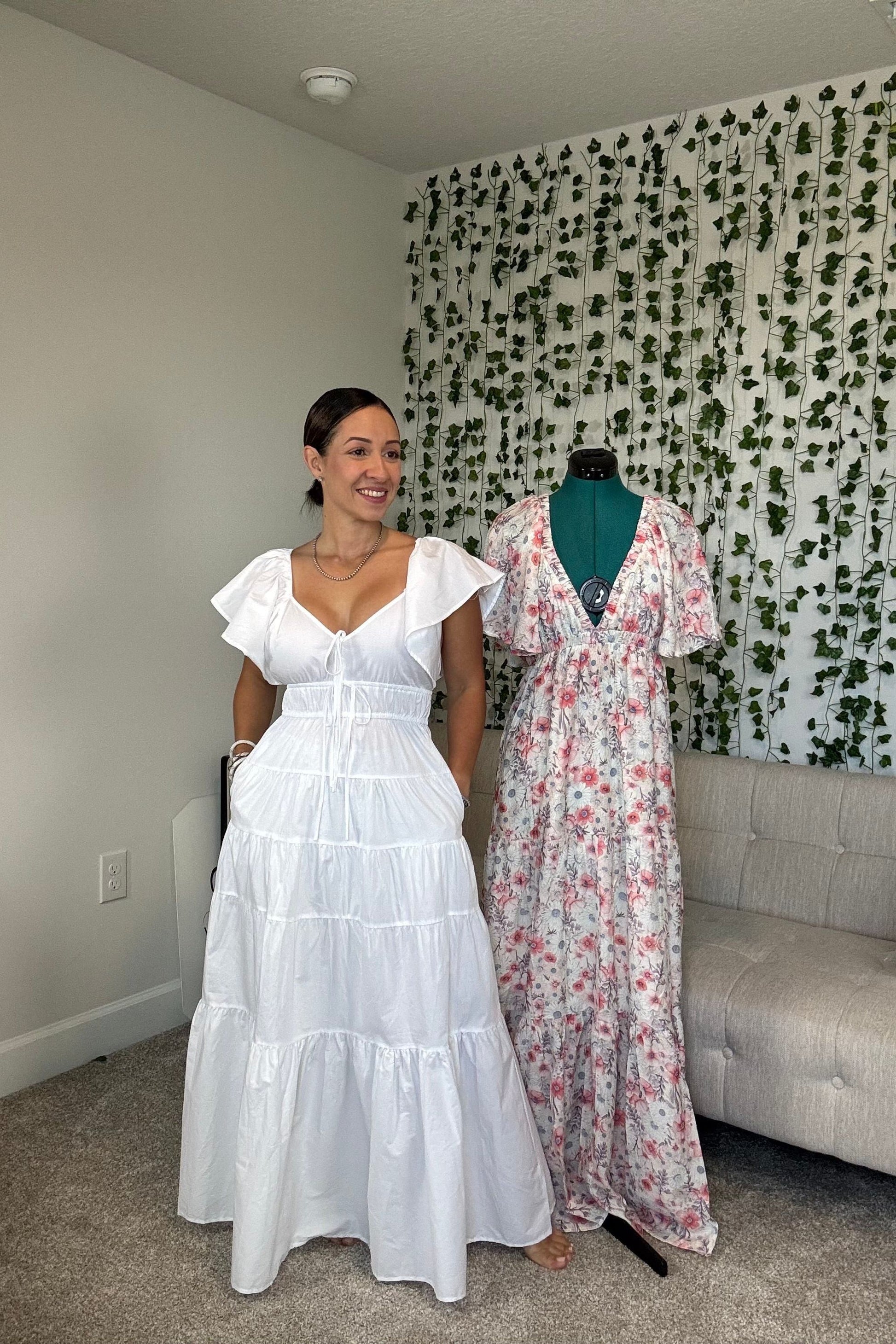 Embrace effortless elegance with the White Poplin Maxi Dress. Featuring a flattering V-neck and flowing silhouette, this tropical-inspired dress combines comfort and style for any occasion. Its lightweight fabric ensures you stay cool while looking effortlessly chic from day to night. Perfect for warm-weather events, this maxi dress elevates your wardrobe with a graceful, sophisticated touch.