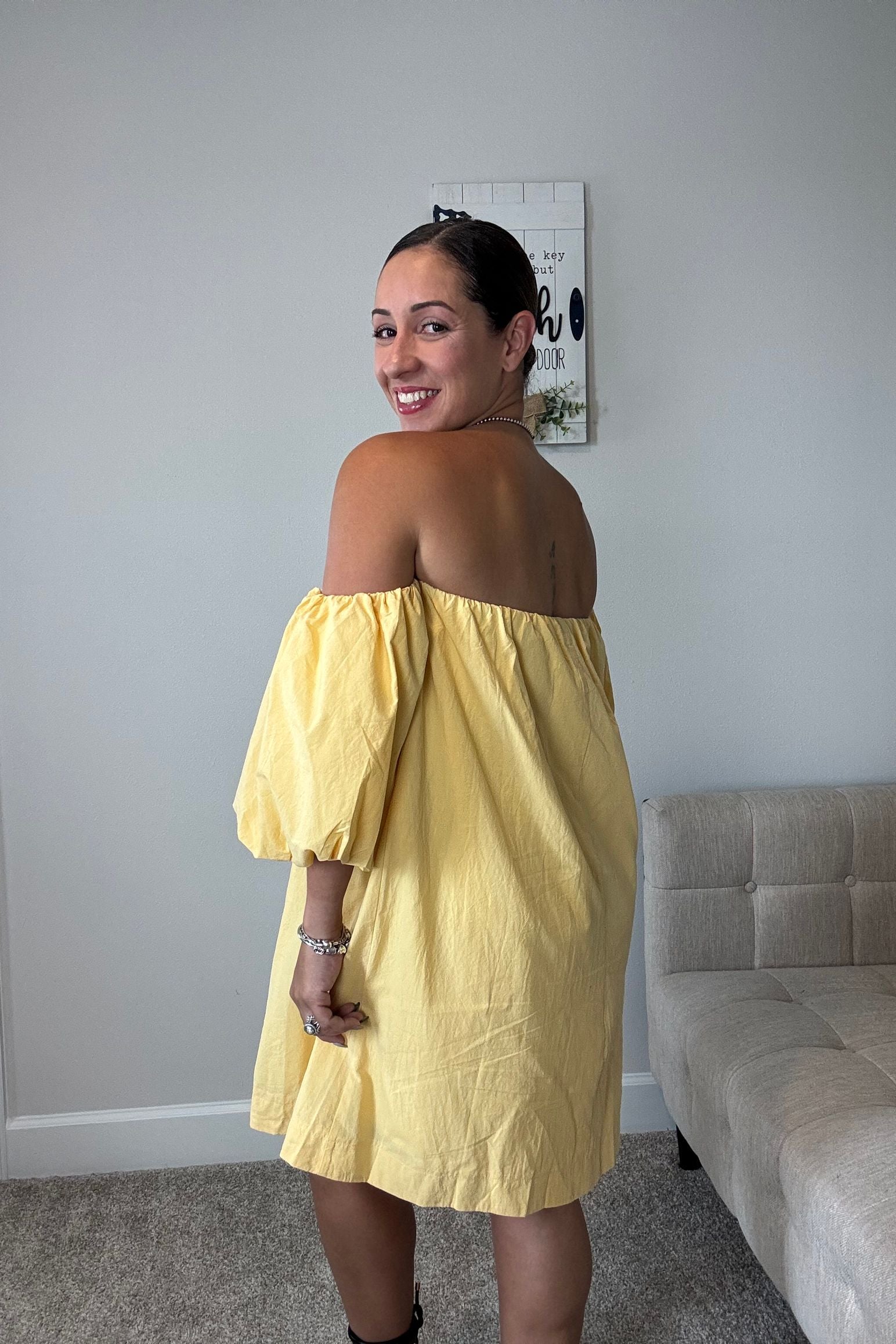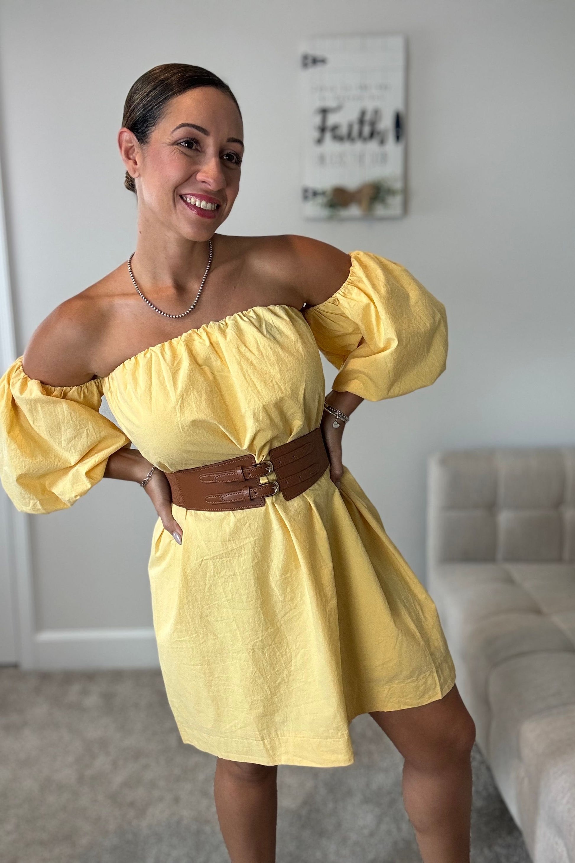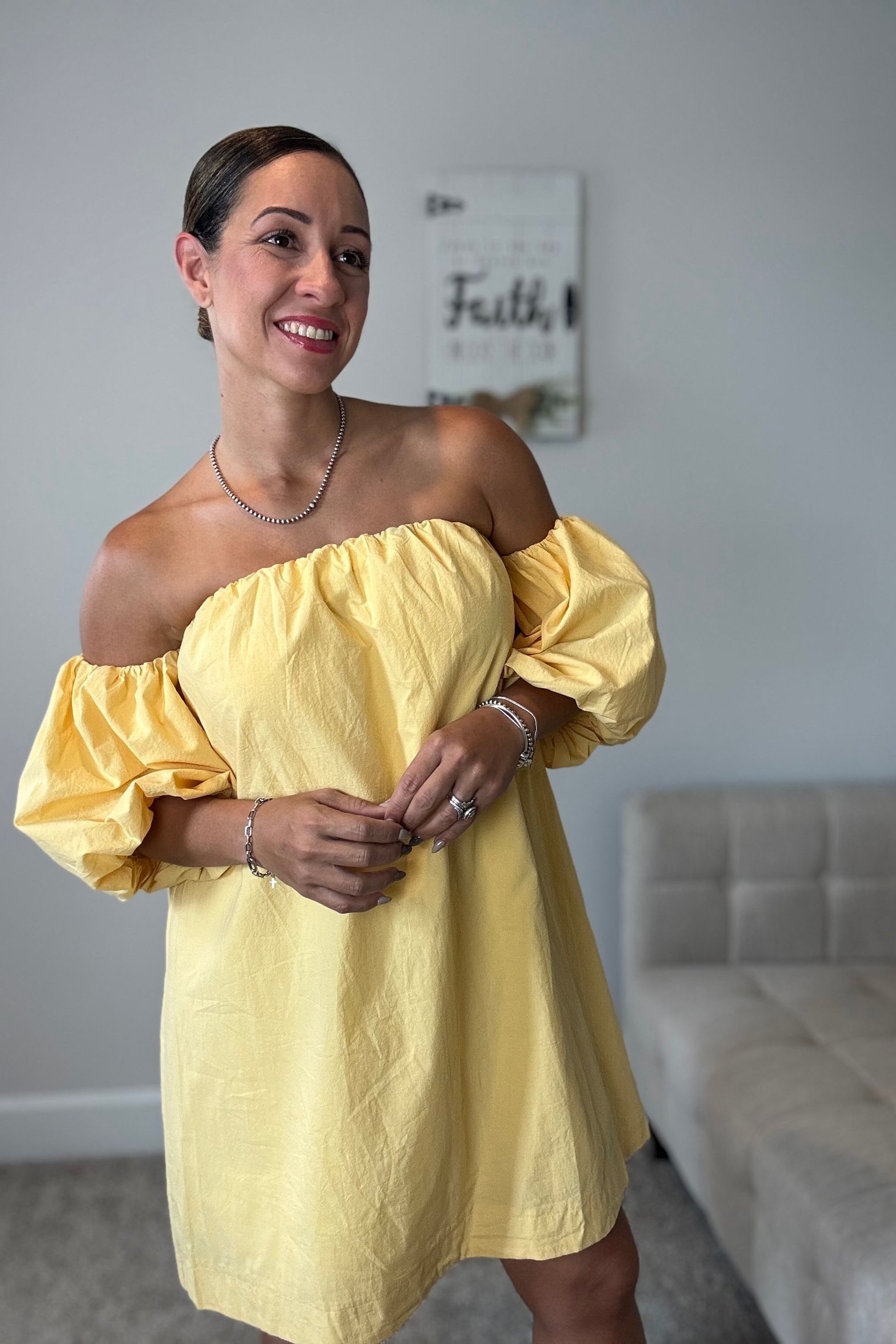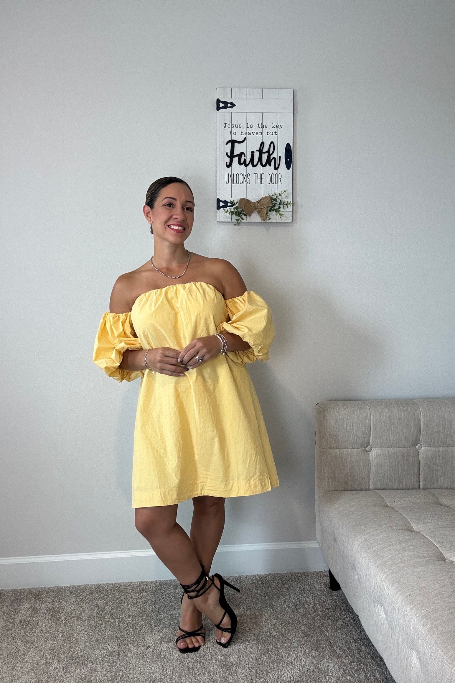 It's off-shoulder design and puff sleeves bring a touch of freshness and sophistication, creating a look that stands out effortlessly.